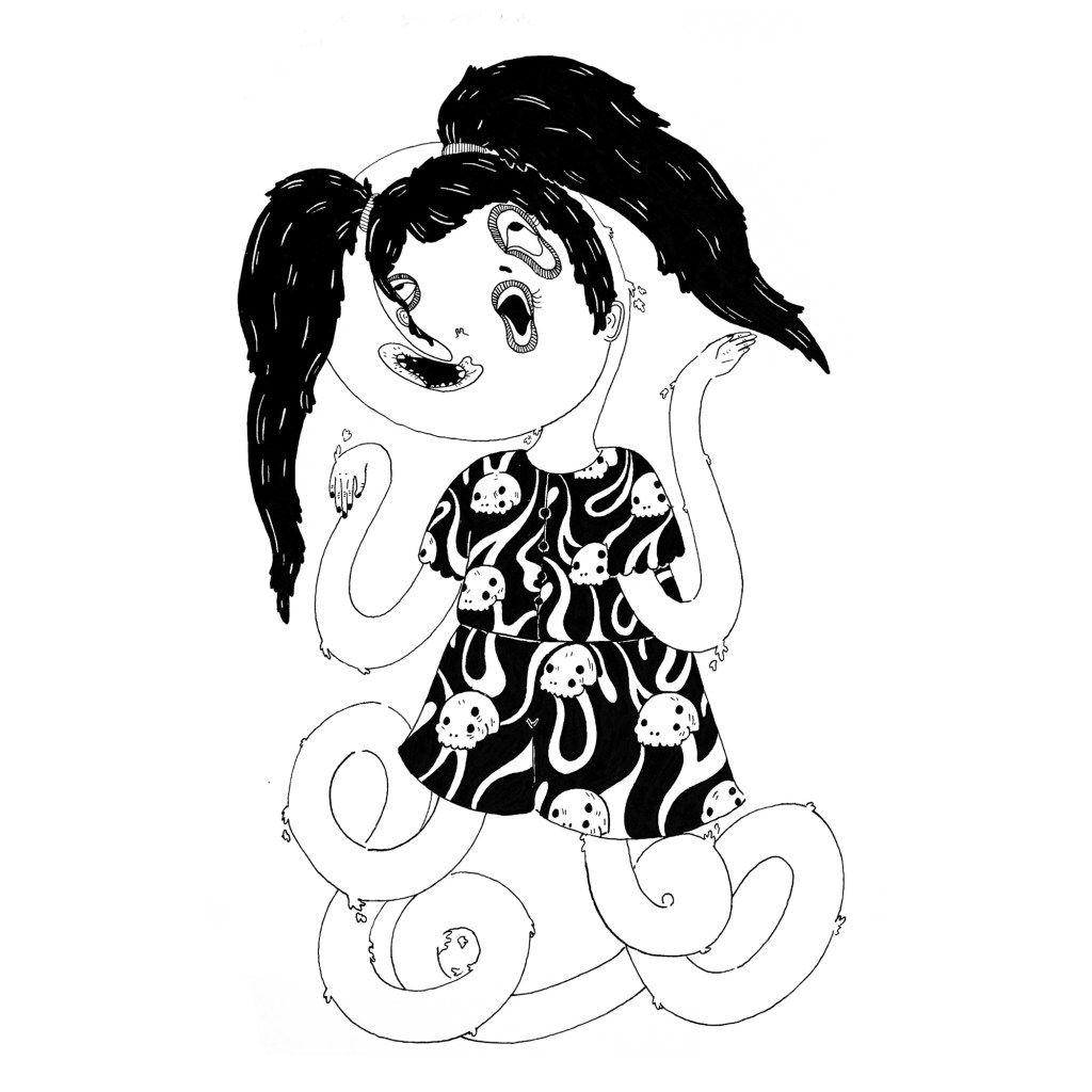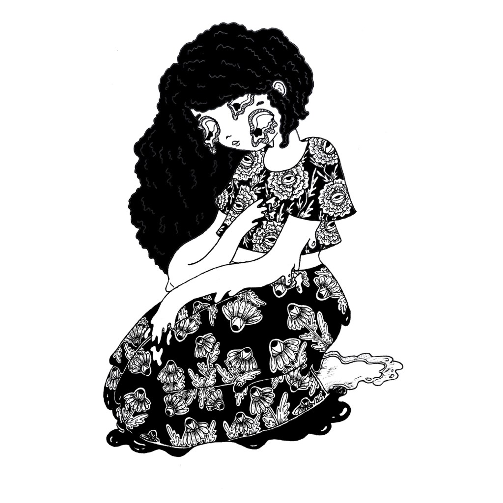 Illustrations made while listening to a song on repeat, in a notebook, with black ink only.